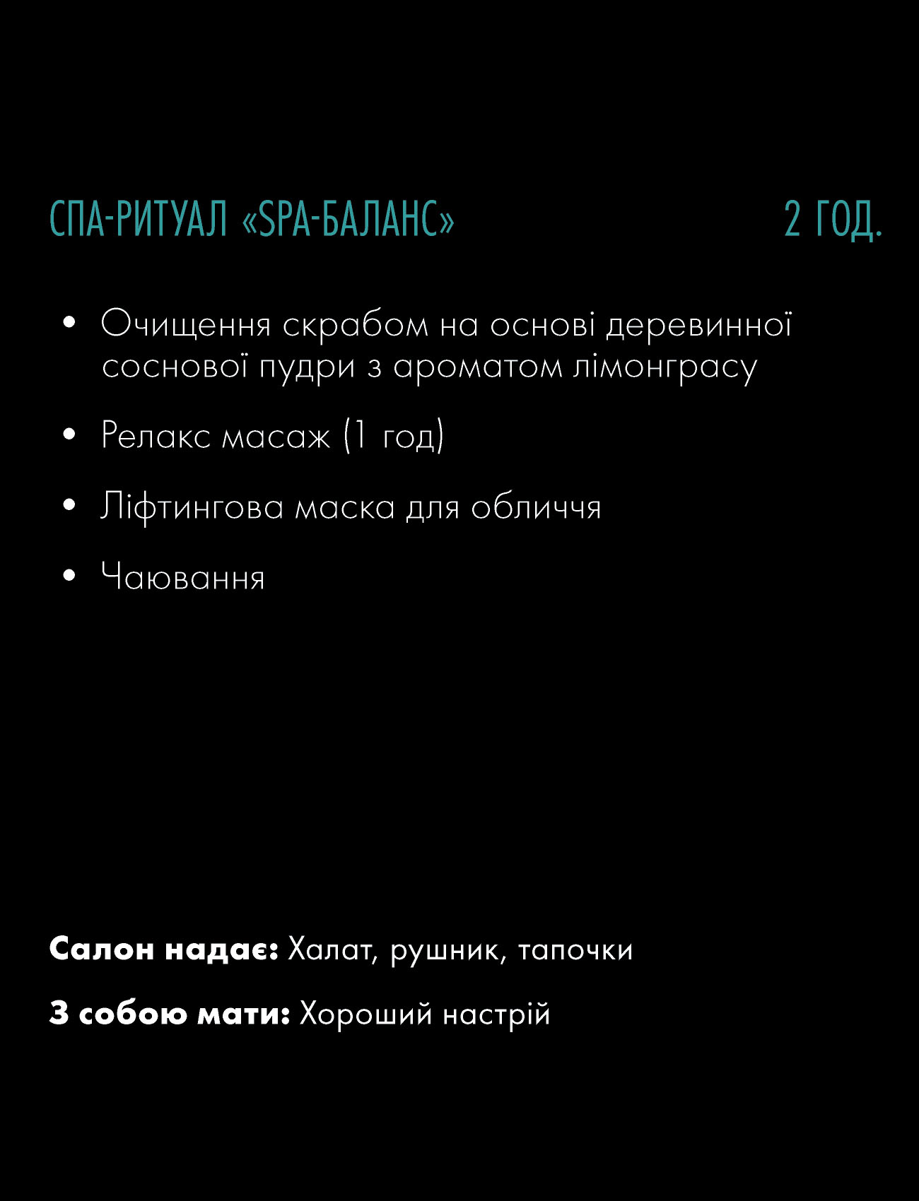 Звертаємо вашу увагу, що актуальні ціни на спа пакети ви можете знайти на сторінці спа меню Там ви можете ознайомитися з детальним описом кожного пакету, його тривалістю, включеними процедурами та актуальною ціною. Також, ви можете отримати консультацію та забронювати спа пакет, зв'язавшись з нами за номером телефону (097) 500-77-27. З нетерпінням чекаємо на вашу зустріч! З повагою, Команда Premium-SPA «Atlantis»